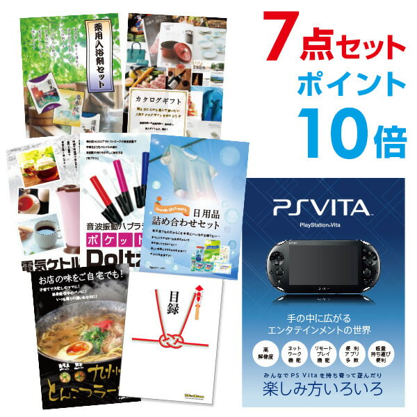 結婚式二次会の景品やビンゴの景品に最適な景品 セットです!二次会 景品 セット PlayStation Vita景品7点セット【ポイント10倍】 A3パネル付の目録で結婚式二次会の景品やビンゴの景品に最適です! 商品名 【目玉商品 PlayStation Vita】おまかせ7点セット 目録&A3パネル付き 商品詳細 PlayStation Vita 薬用入浴剤セット カタログギフト 電気ケトル パナソニック ポケットドルツ 日用品 詰め合わせセット 全国繁盛店ラーメンセット 忘年会 景品、二次会 景品 ビンゴ 景品や結婚式 景品等、各種イベントに便利な目録景品のパネル付になります。